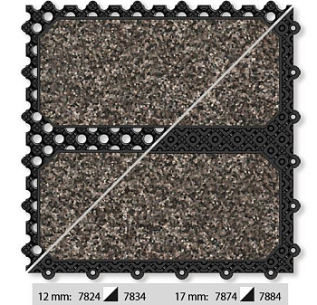 Вставки покрытия из пяти популярных цветов из коллекции Coral Brush. Также предлагается простая плитка ПВХ (7828/7838), которую можно использовать в качестве завершающего профиля по периметру или для начальной очистки, где она удалит грубую грязь с подошв обуви.