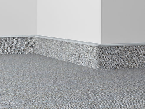 Плинтус на основе из древесно-стружечного материала, обрамленная высокоэффективным пластиком, не содержащим хлор, для наклеивания полос коврового покрытия.