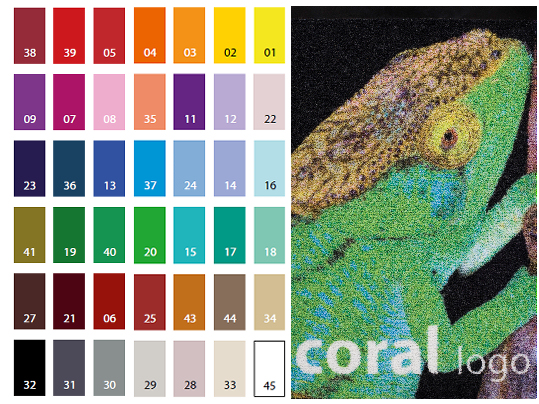 • Большой выбор фоновых цветов, и цветов для логотипа в стандартной коллекции Forbo Coral